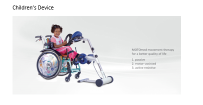 The cycle gently moves legs or arms passively or actively. It can also provide partial assistance if required. The alternating and repetitive movements can have a positive effect on muscle tone and joint mobility. It improves circulation, decreases oedema and can help alleviate spasms. The Motomed exercise helps generate a sense of wellbeing as it is a means whereby children with little or no movement can regularly exercise in active or passive mode using either legs or arm versions. The Motomed has been globally proven to positively influence the therapy progress of many conditions and it can strengthen a child’s physical and mental well-being with regular training.